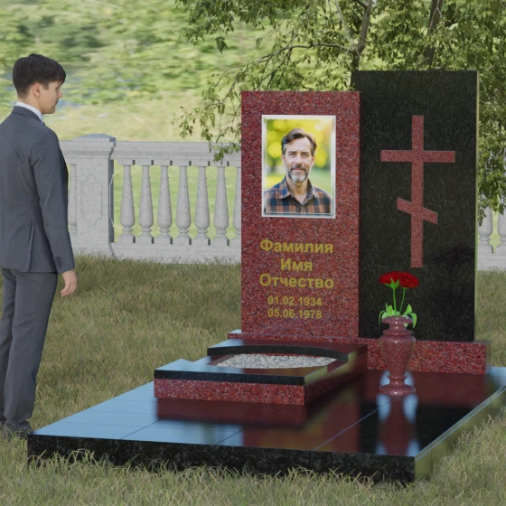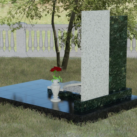 Кому подойдет: Эта модель является универсальным решением для тех, кто ищет баланс между традициями и современным дизайном. В строгом контрастном исполнении (черный и белый гранит) мемориал станет достойным памятником отцу, мужу, брату или дедушке, подчеркивая их мужество и твердость. При выборе более мягких оттенков, таких как мрамор Тассо или гранит Блю Перл, композиция приобретает нежность и светлую грусть, идеально подходя для оформления захоронения матери, жены или дочери. Это выбор людей, стремящихся выразить свою глубокую скорбь через благородную эстетику камня, которая останется неизменной для многих поколений потомков.