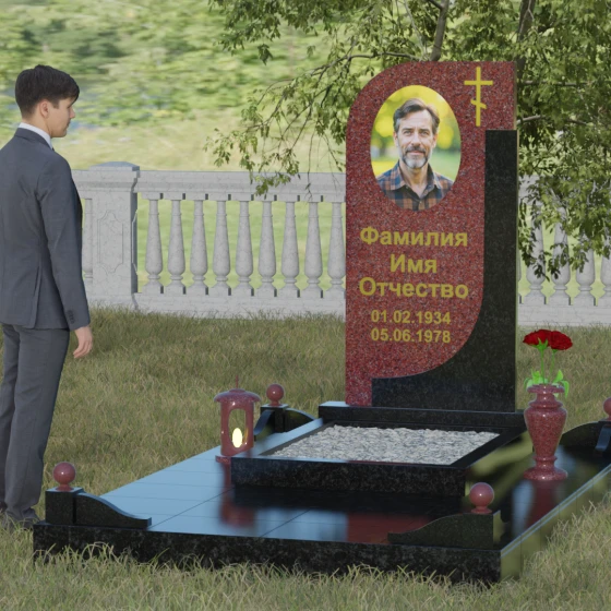 Кому подойдет: Данная модель является универсальной и гармонично впишется в мемориальный комплекс как для мужчины, так и для женщины. Асимметричная форма с плавным изгибом придает памятнику определенную легкость, что часто выбирают для оформления захоронений матерей или жен. В то же время строгая вертикальная колонна и золоченая символика делают его подходящим для увековечивания памяти отца, брата или главы семейства. Это выбор тех, кто ценит эстетику минимализма, надежность натуральных материалов и хочет подчеркнуть преемственность поколений и крепость семейных уз.