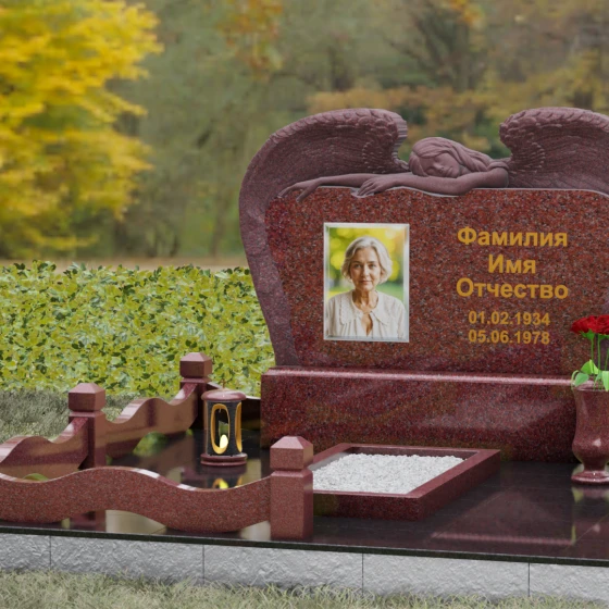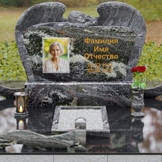 Оформление: Благодаря большой площади горизонтальной плиты, эта модель идеально подходит для размещения крупного художественного портрета и каллиграфических надписей. Мы рекомендуем использовать глубокую гравировку с последующим покрытием сусальным золотом или «под золото», что в сочетании с темными видами гранита подчеркнет статусность и величие монумента.