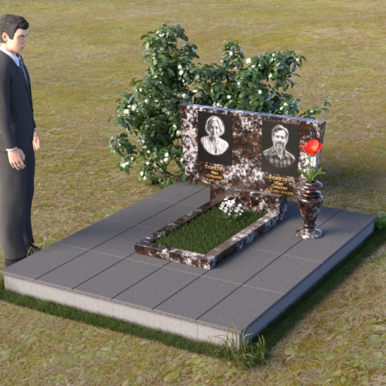 Асимметричная форма стелы не случайна. Она символизирует жизненный путь, который не всегда бывает прямым и предсказуемым. Скошенный угол, напоминающий крыло, несет в себе идею защиты и утешения, а также веру в загробную жизнь. Зеркальная полировка, в свою очередь, отражает свет и символизирует чистоту души и вечную память. Горизонтальная плита, расположенная под стелой, олицетворяет землю, на которой покоится прах усопших, и одновременно служит связующим звеном между земным и небесным мирами. Общий вид памятника создает ощущение покоя и умиротворения, приглашая к тихой молитве и воспоминаниям.