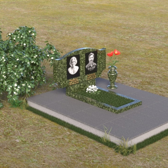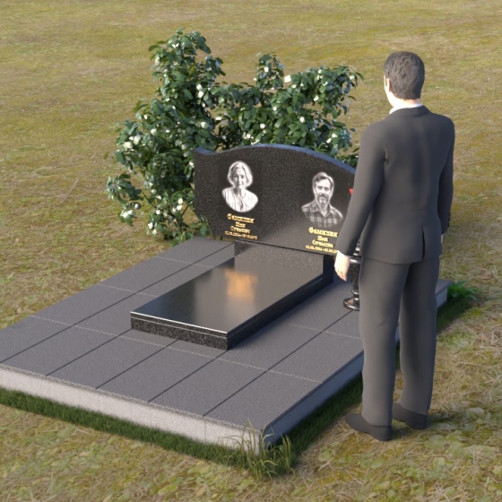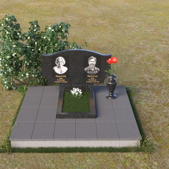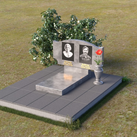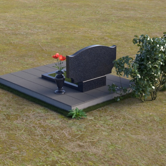 Этот гранитный монумент привлекает внимание своей плавной, обтекаемой формой. Верхняя часть надгробного сооружения представляет собой дугу с легким изгибом, напоминающим колыбель или волну, бережно укрывающую покой. Боковые грани скруглены, что придает памятнику мягкость и умиротворенность. Фаска, аккуратно снятая по периметру, подчеркивает четкость линий и добавляет изделию изысканности. Нижняя часть монумента выполнена в форме прямоугольника, создавая устойчивое основание и визуальный баланс. Дополнительная горизонтальная плита, расположенная на основании, добавляет композиции завершенность и предоставляет место для нанесения эпитафий или размещения цветов.