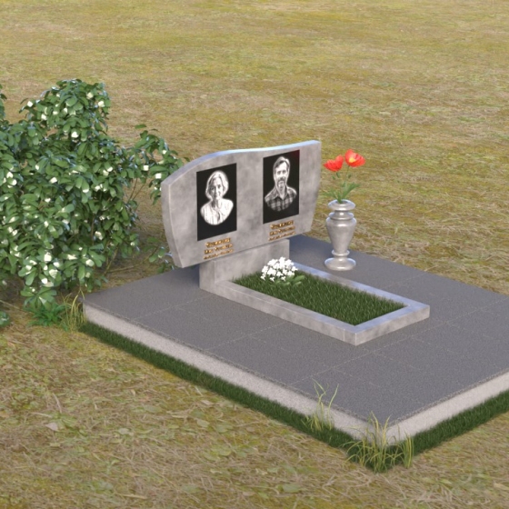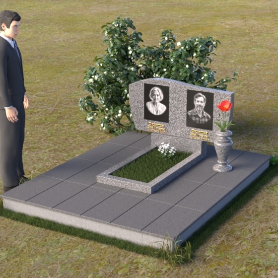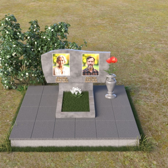 Оформление: Для этой формы стелы рекомендуется выбирать портреты с четкими контурами, чтобы гравировка максимально точно передала образ усопшего. Имена и даты рождения можно разместить под портретами, используя элегантный шрифт с золотым напылением, что придаст ритуальному изделию дополнительную торжественность.
