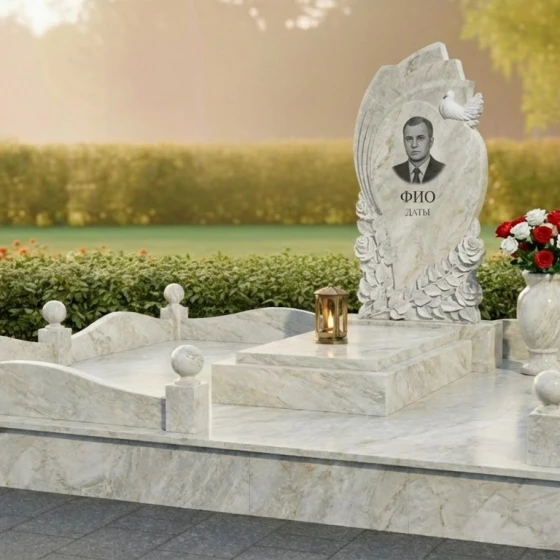 Форма стелы, с ее плавными изгибами и устремленностью ввысь, символизирует бесконечность души, ее переход в мир иной и вечный покой. Резные элементы – розы и голубь – несут глубокий сакральный смысл. Розы, с их нежными лепестками, традиционно ассоциируются с любовью, красотой и скоротечностью жизни, а голубь – с миром, чистотой и светлой душой усопшего. Общая композиция ритуального изделия призвана дарить утешение, напоминая о том, что любовь и память живут вечно, а ушедший человек обрел покой и умиротворение. Это надежный щит для памяти, оберегающий светлые воспоминания.