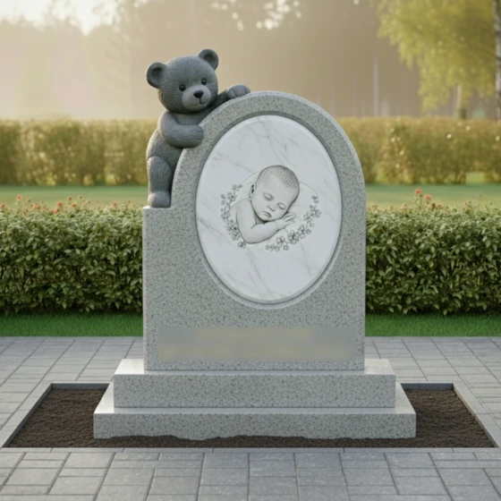 Кому подойдет: Этот гранитный монумент чаще всего выбирают для оформления детских захоронений или могил совсем молодых людей. Он предназначен для тех, кто хочет уйти от строгих канонов и тяжелых форм в сторону светлой, трогательной памяти. Это выбор родителей и близких, стремящихся выразить свою безграничную любовь через образ нежности, чистоты и вечной заботы. Благодаря возможности исполнения в разных цветах (от сурового темного гранита до воздушного белого мрамора), памятник может стать как строгим мужским мемориалом в честь безвременно ушедшего сына, так и изящным женским надгробием для дочери.