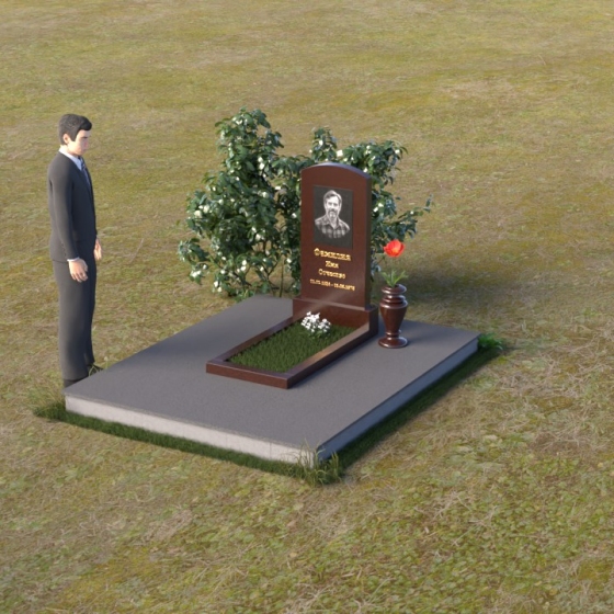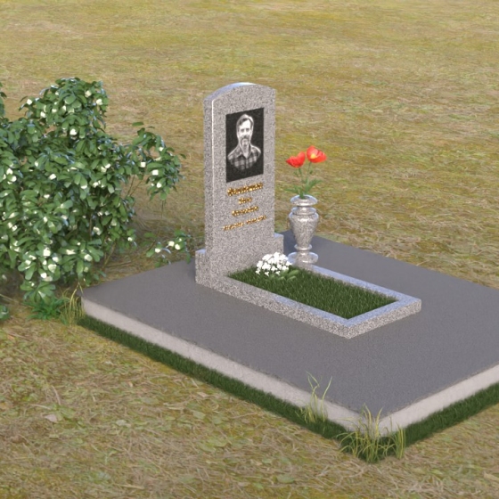 Благодаря своей лаконичной форме, эта стела предоставляет широкие возможности для оформления. Портрет усопшего будет гармонично смотреться как в верхней части стелы, так и чуть ниже центра. Золотое тиснение имени и дат жизни будет элегантно выделяться на фоне полированного камня, создавая четкий и легко читаемый образ. Небольшая тумба, расположенная перед стелой, может служить местом для возложения цветов и памятных вещей. Мы рекомендуем выбирать для этой модели сдержанные, лаконичные шрифты, которые подчеркнут общую элегантность композиции. Подумайте о возможности добавления небольшого бронзового барельефа или скульптуры, отражающей профессию или увлечения ушедшего человека. Это добавит индивидуальности и сделает место памяти еще более личным и значимым. Ваза, выполненная в едином стиле с монументом, завершит композицию и придаст ей законченный вид.