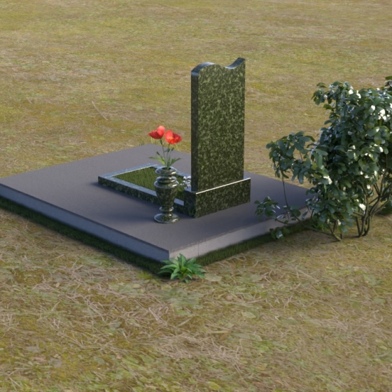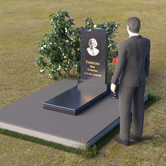 Под стелой располагается горизонтальная плита, также выполненная из полированного гранита, создающая ощущение завершенности и гармонии. Ее зеркальная поверхность отражает небо и облака, словно стирая границу между земным и небесным. Вместе стела и плита образуют единый ансамбль, который органично вписывается в ландшафт, подчеркивая красоту и умиротворение места захоронения. Черный цвет гранита символизирует скорбь и уважение, а его плотная структура гарантирует долговечность и устойчивость к любым погодным условиям. Этот памятник – достойное обрамление памяти о близком человеке, которое будет служить напоминанием о его жизни для будущих поколений.
