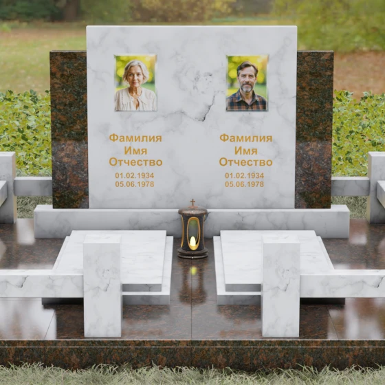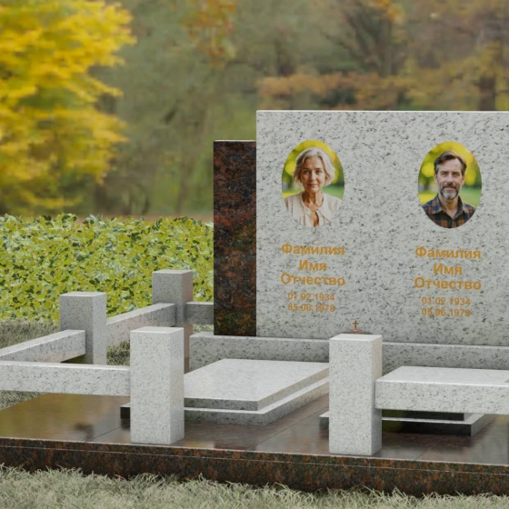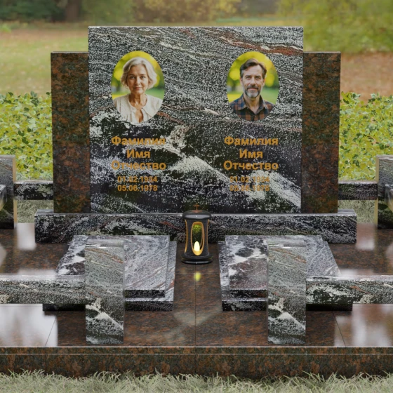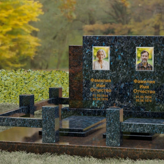Данное ритуальное изделие представляет собой величественный мемориальный ансамбль, выполненный в лучших традициях архитектурного триптиха. В основе композиции лежит монументальность и незыблемость, призванные запечатлеть память о близких в вечном камне. Этот ансамбль олицетворяет собой торжественное спокойствие и надежность, превращая место захоронения в настоящий пантеон. Высокое качество исполнения каждой детали подчеркивает глубокое уважение к усопшим, создавая пространство, где время словно замирает перед лицом вечности.