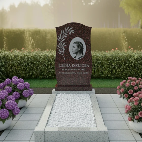 Вечность, застывшая в благородном камне, требует особого языка выражения. Перед вами не просто ритуальное изделие, а настоящее произведение мемориального искусства, призванное пронести память сквозь десятилетия. Этот гранитный монумент является воплощением строгости, смягченной изящными природными мотивами. Его гладкая, словно водная гладь, поверхность отражает небесный свод, создавая метафизическую связь между земным и возвышенным. Ключевой особенностью данной модели является безупречная зеркальная полировка, которая не только придает камню торжественный вид, но и служит надежной защитой от внешних воздействий, словно "консервируя" красоту породы на века.